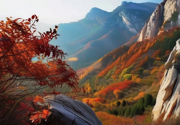 石门坊红叶谷坐落在博山南部山区,距离淄博市区仅30公里。景区以"三月樱花如雪,十月红叶似火"闻名,而10月中下旬正是红叶观赏的黄金期。红色从山顶渐次蔓延,与远处悬崖上的明代摩崖石刻相映成趣,形成"人在画中行"的绝妙意境。石门坊红叶谷在哪里?导航搜索"博山石门坊景区"即可直达。